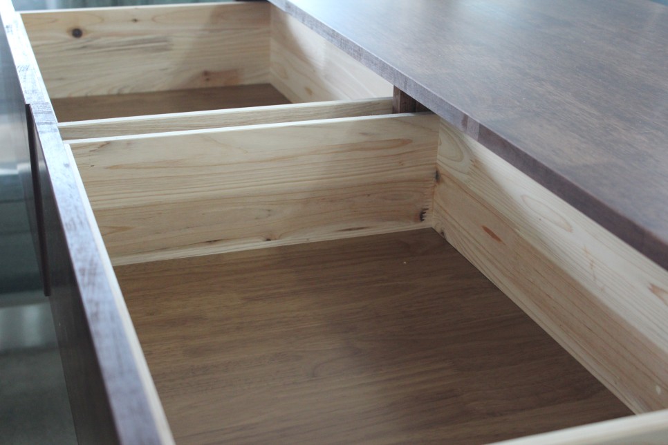 원목으로 제작된 서랍장은