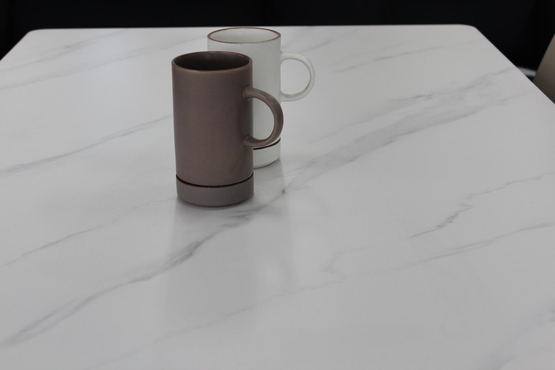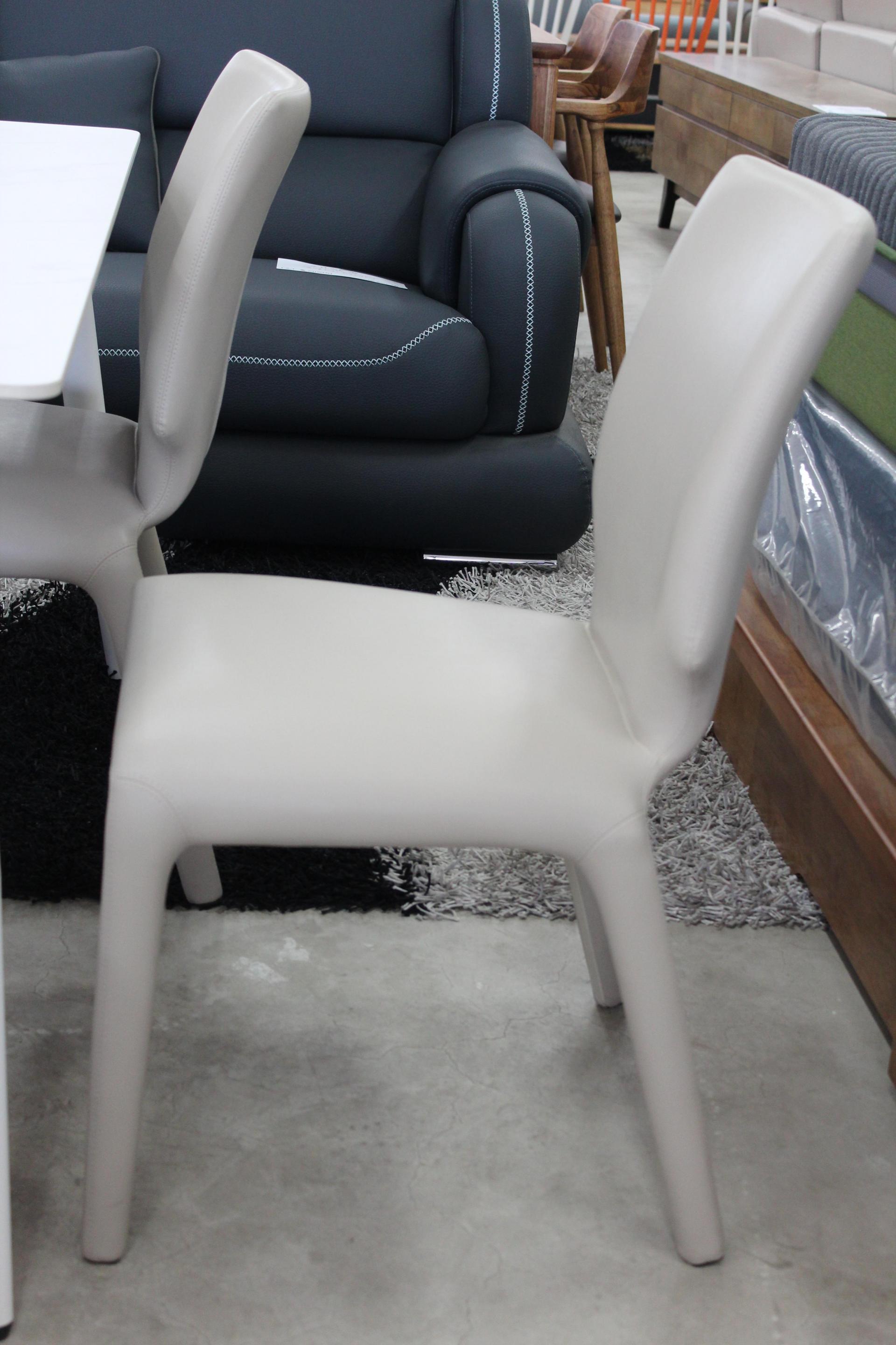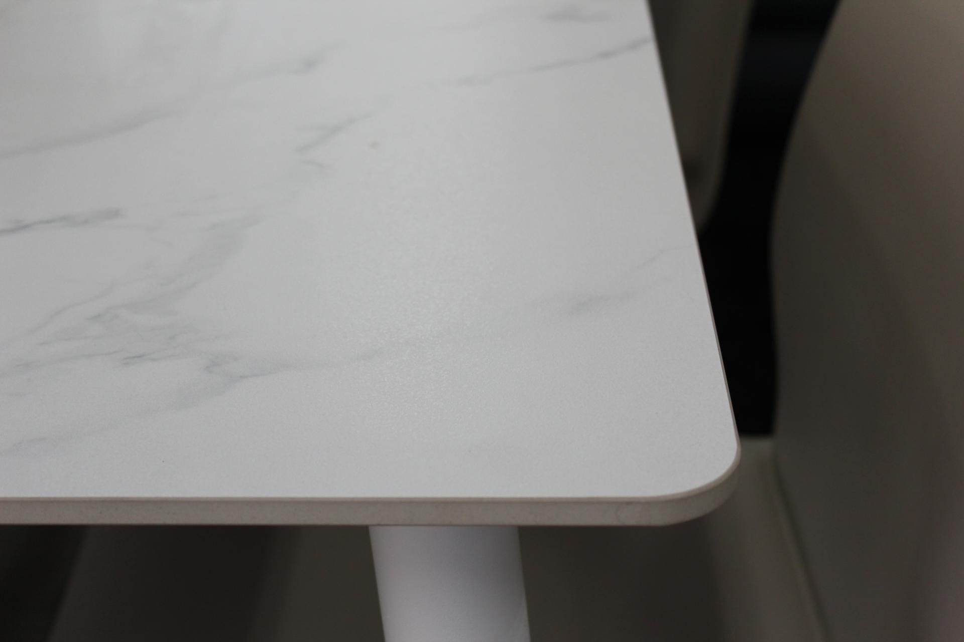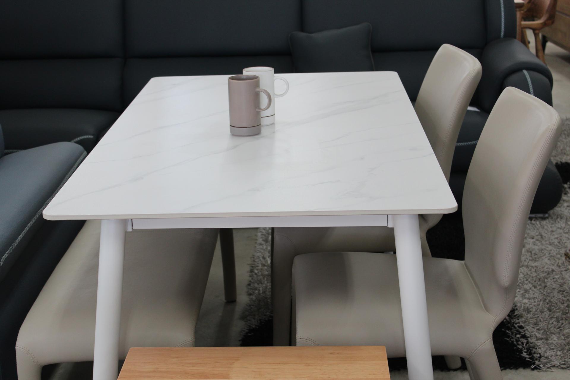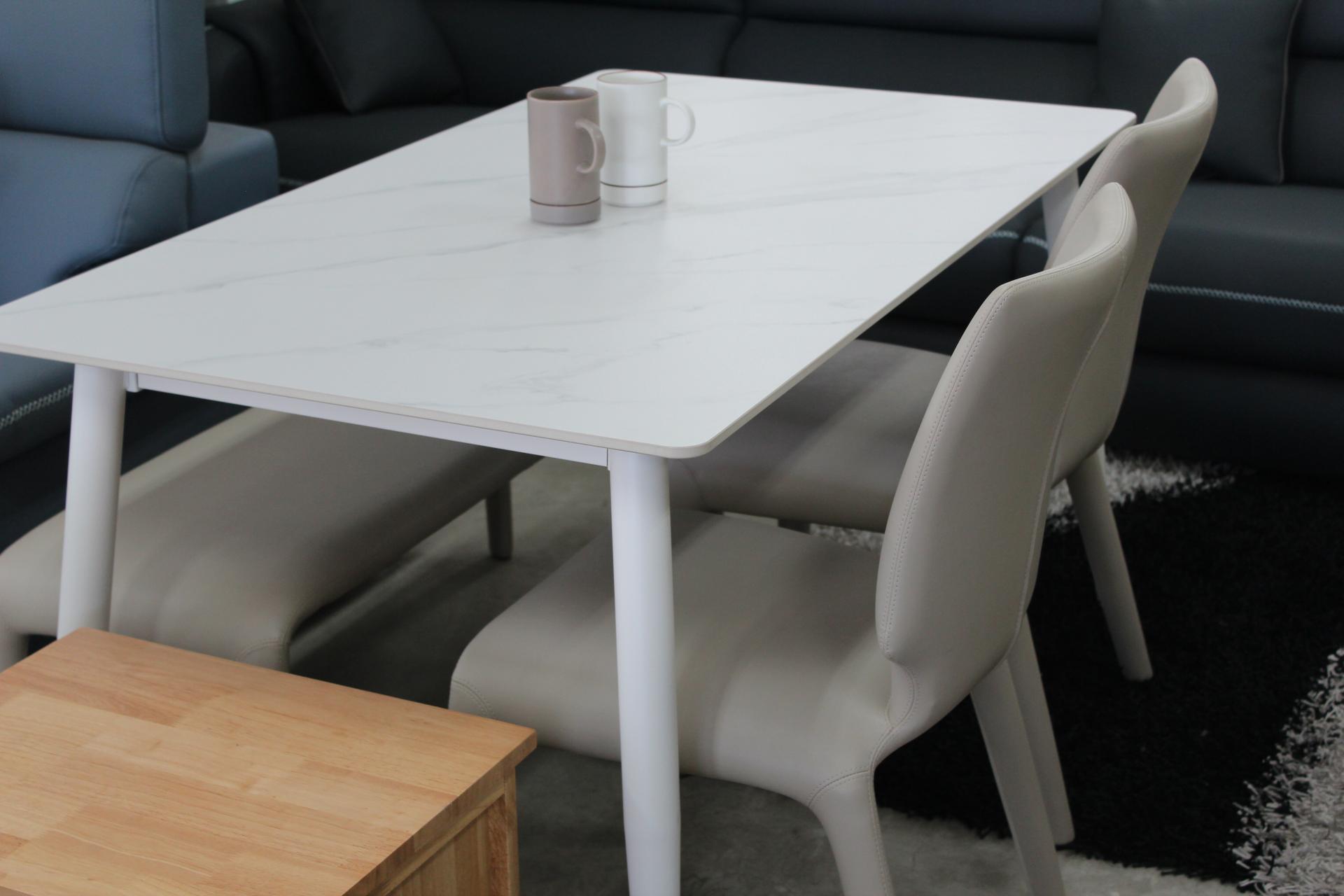 화이트 세라믹 상판과 베이지 의자의 조합으로