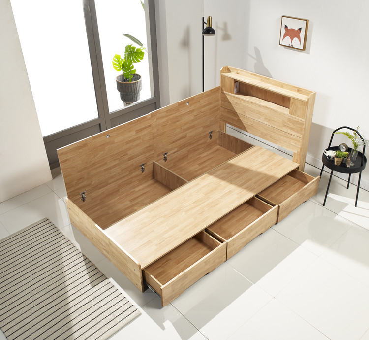 원목 서랍 침대 (고무나무 )